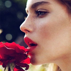 俏皮的唇色衬托出少女般粉嫩肤色偶尔也可以扮起小清新也能得心应手。浪漫的花香最适合这样的鲜活唇妆。