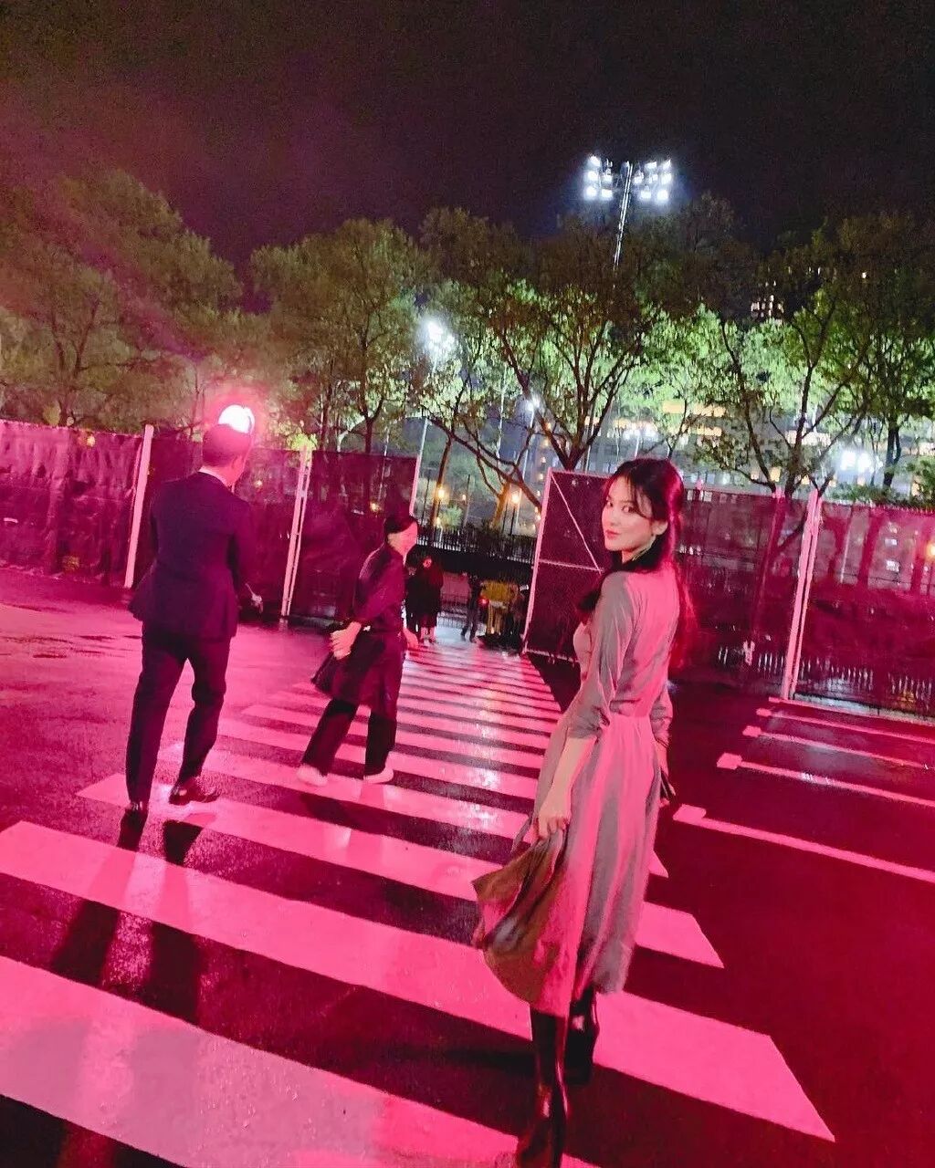 今年5月乔妹去纽约看秀,黑长卷发、黑色全包眼线、黑色眼影,这是宋慧乔很少见到的非常“自我”的妆容。