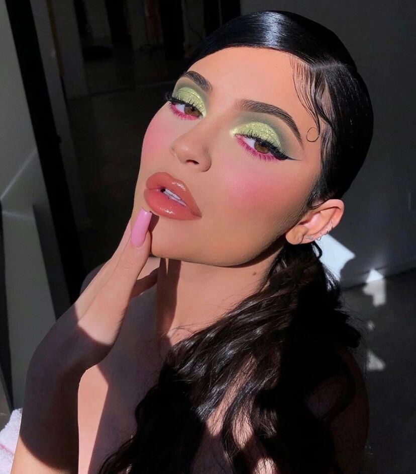 仔细观察就会发现,Kylie把自己的唇线向外扩并晕开了边缘,所以嘴唇从视觉上看才会有种打了丰唇一样的饱满感。