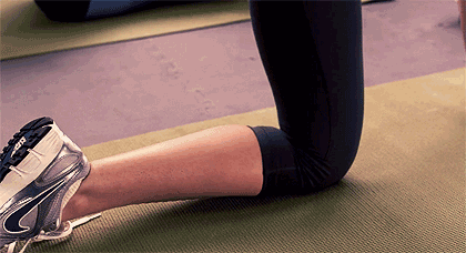 最后一个动作,先起身坐起用大腿和小腿夹住泡沫轴
