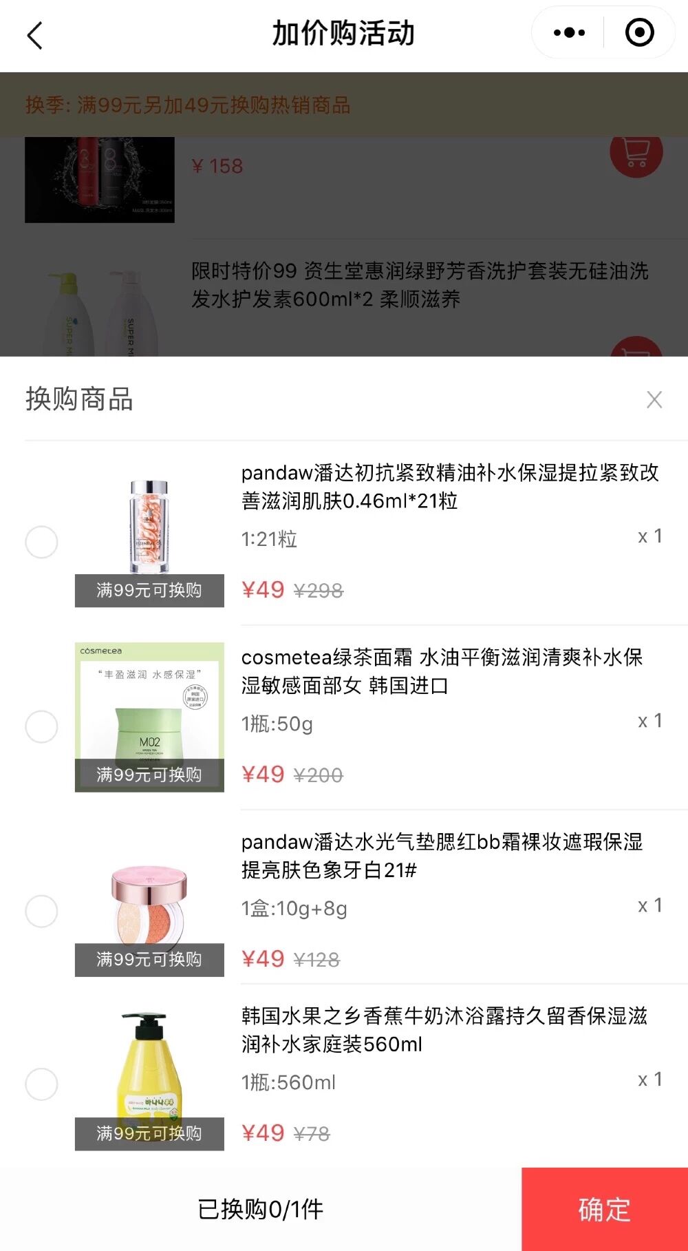 只要老客购买店内正价商品超过99元,即可以49元换超值商品一份!换购区全都是编辑们亲测好用到爆的人气商品,售完无补的哦!