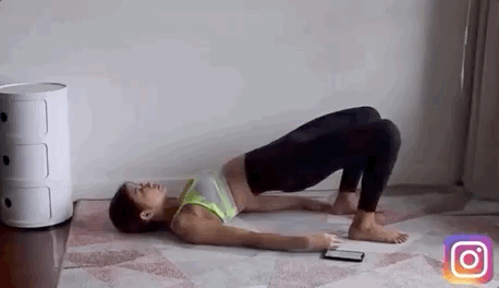 Step 3:臀桥支撑,平躺,膝盖弯曲,抬起臀部并收紧保持膝盖、臀部、肩膀形成一条直线。
