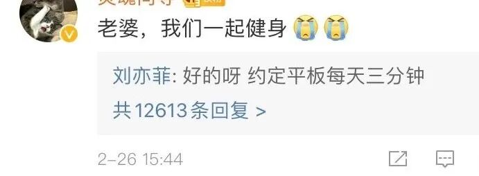 她还在微博翻牌粉丝,约定每天平板支撑三分钟,带领大家强身健体,每天打卡。