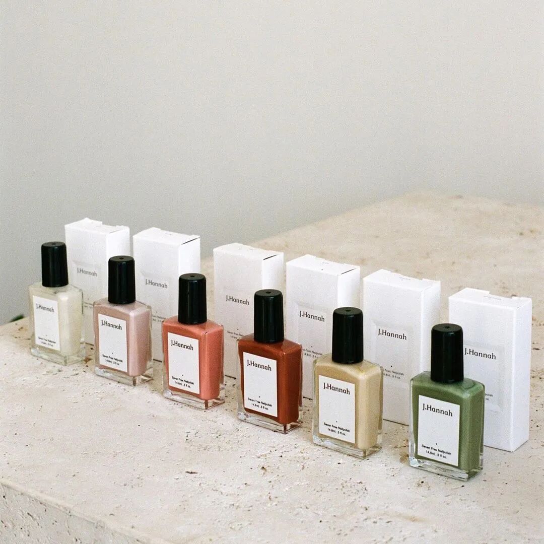 和其他品牌不同的是,J.Hannah本身是做性冷淡风的首饰品牌,设计师觉得市面上的指甲油色彩都不足以匹配品牌的珠宝,所以开始研发,自己出品!