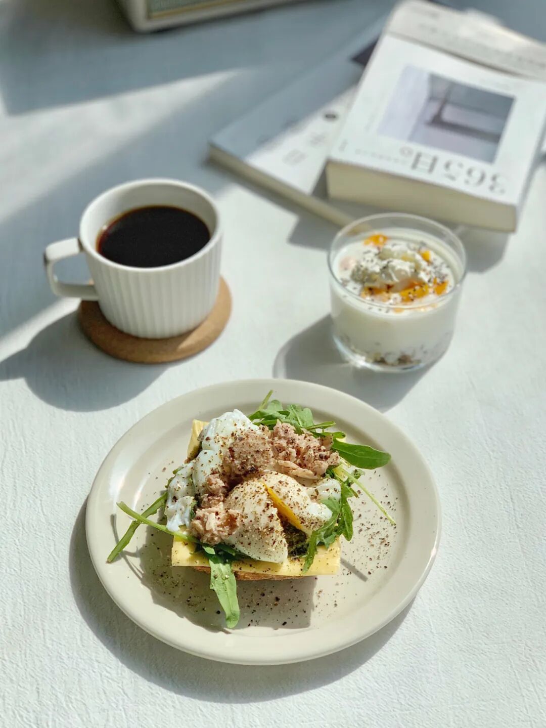 因为平时非常喜欢西式早餐,所以可以就地取材,搭配出许多偏西式的餐点。而且在餐厅繁琐的事情比较多,留给早餐的时间相对较少,所以早上我会选择不需要过多技巧便能完成的西式早餐,颜值高、但热量不高。