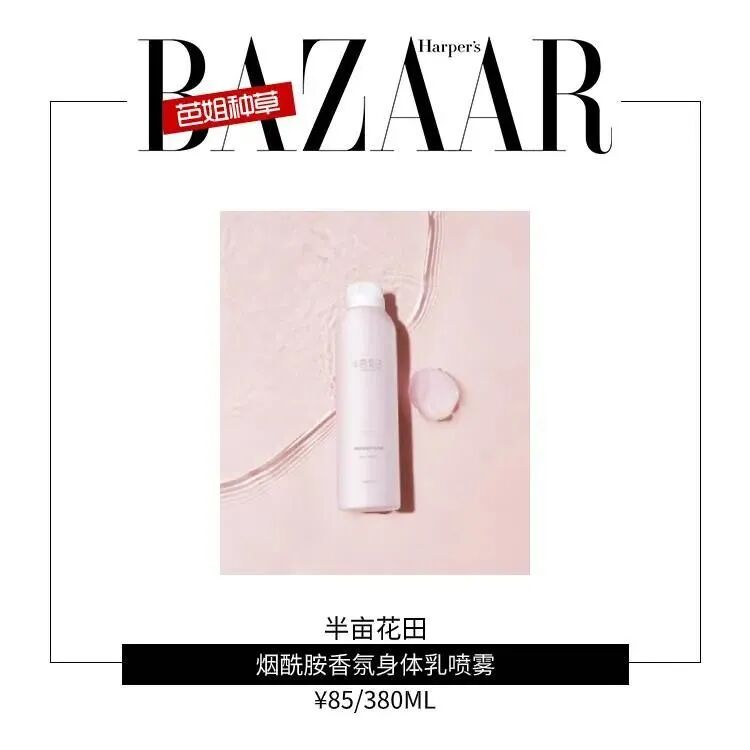 这是一款可以“喷”的身体乳,轻薄雾感好吸收,夏季使用无负担。富含烟酰胺、VE成分,由内而外焕亮肤色。