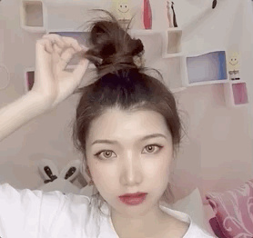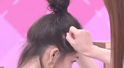 在扎好丸子头后,还要记得用一字夹的另一头以画“Z字形”的方式滑动露头皮的地方,头发就会顺着发根变得蓬松规整,发量少也不用愁了~