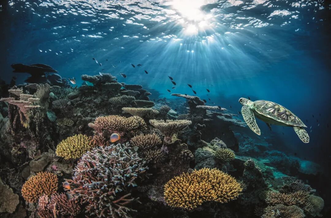 以波光粼粼的蔚蓝之海作为灵感源泉,瓶身手绘的海藻和珊瑚,微光浮动神秘感十足,在这个夏日带给你一丝清爽。