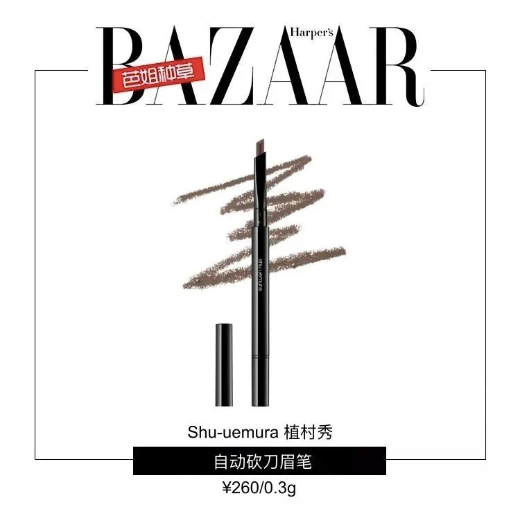 超方便的自动砍刀眉笔,省去了麻烦的削笔操作,而且更适合随身携带。武士刀形状的笔头很好描画眉形,显色度也刚刚好,不用担心下手太重出现色块的问题。