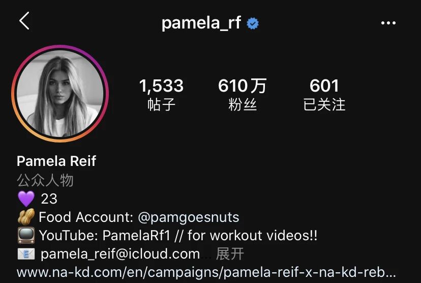她们口中的这个名字是一位YouTube的健身博主“Pamela Reif”,人称“魔鬼帕姐”,年仅23岁就已经坐拥610万的ins粉丝,401万油管订阅粉丝。
