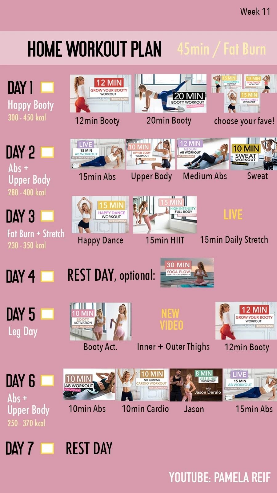 内容是要每天跟着帕梅拉做一个运动教程,完成一周的打卡目标~