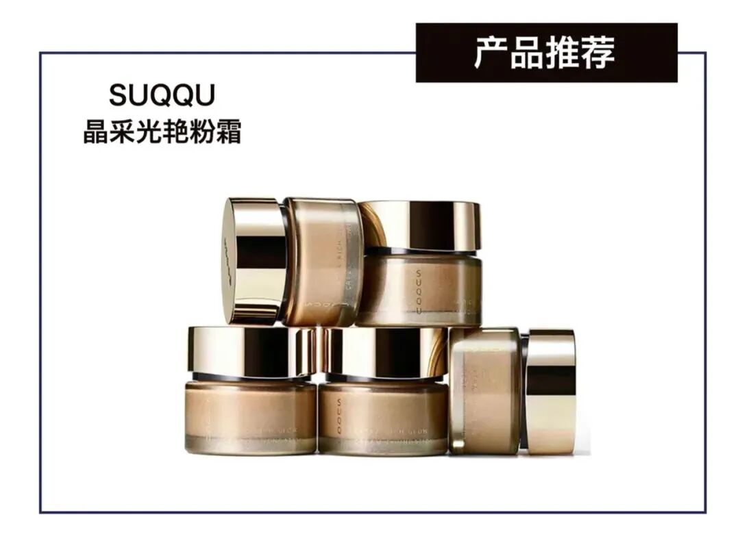 虽然我是混油皮但是我的底妆产品不会选择太干的,反而会选择滋润一些的。这样才能扛出我的定妆方法,同时不会出现斑驳、浮粉等问题。我比较常用SUQQU晶采光艳粉霜,能够很好的吸收晚间我脸上的油脂,呈现出越夜越美丽的妆效。
