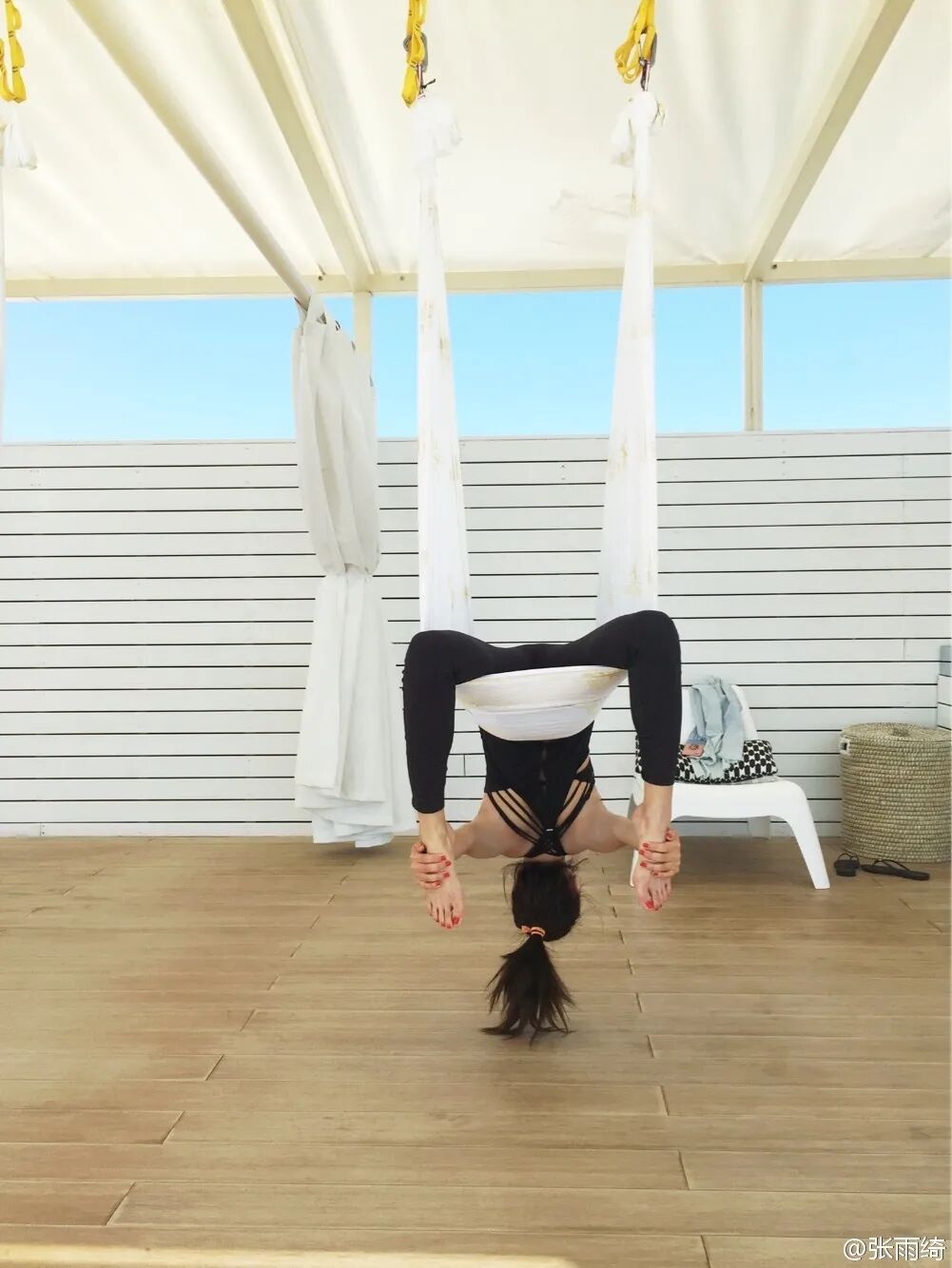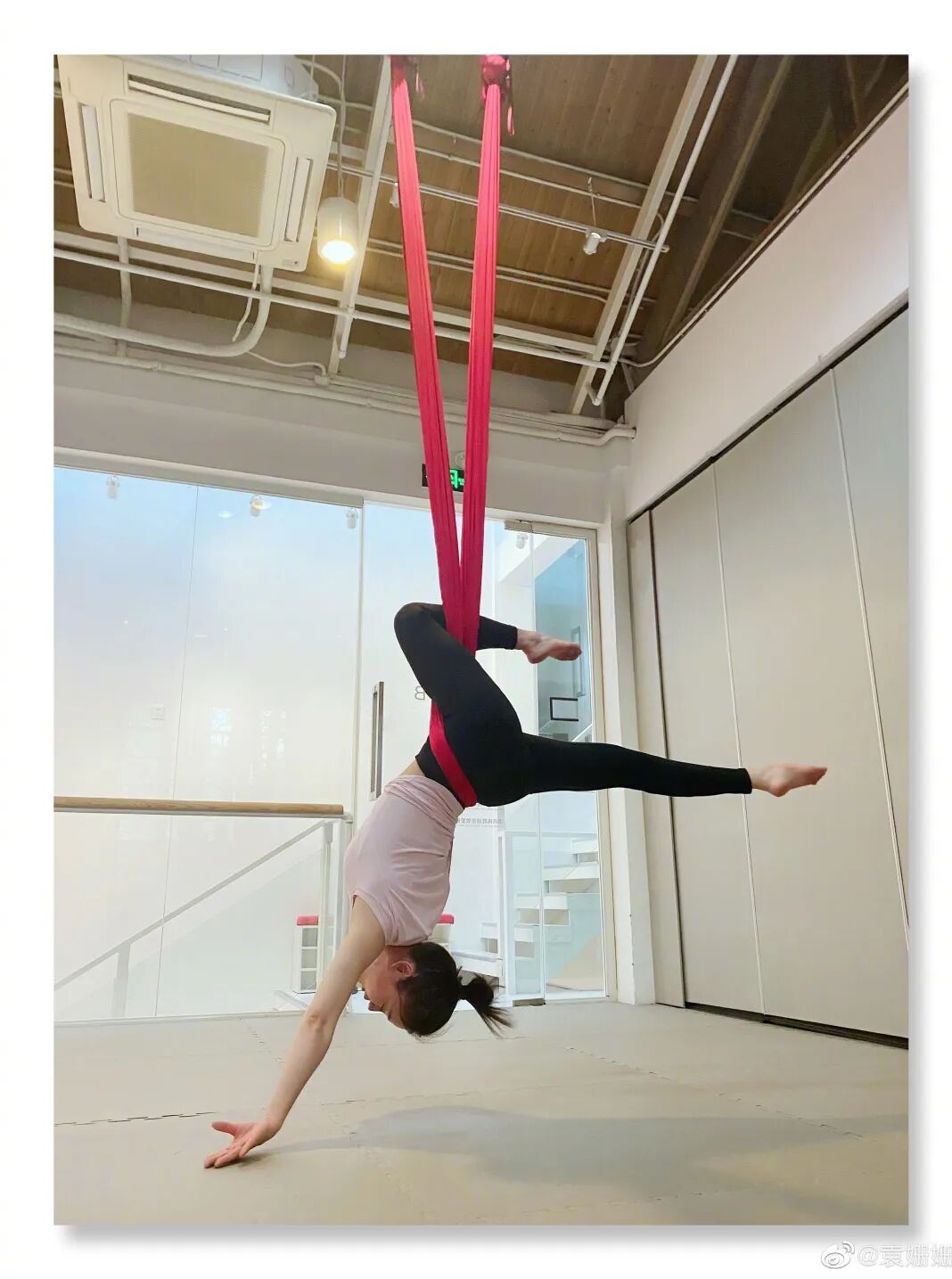 每天雷打不动地早起晨跑,练起难度颇高的空中瑜伽也不在话下,这优美的转体动作,太赏心悦目了!