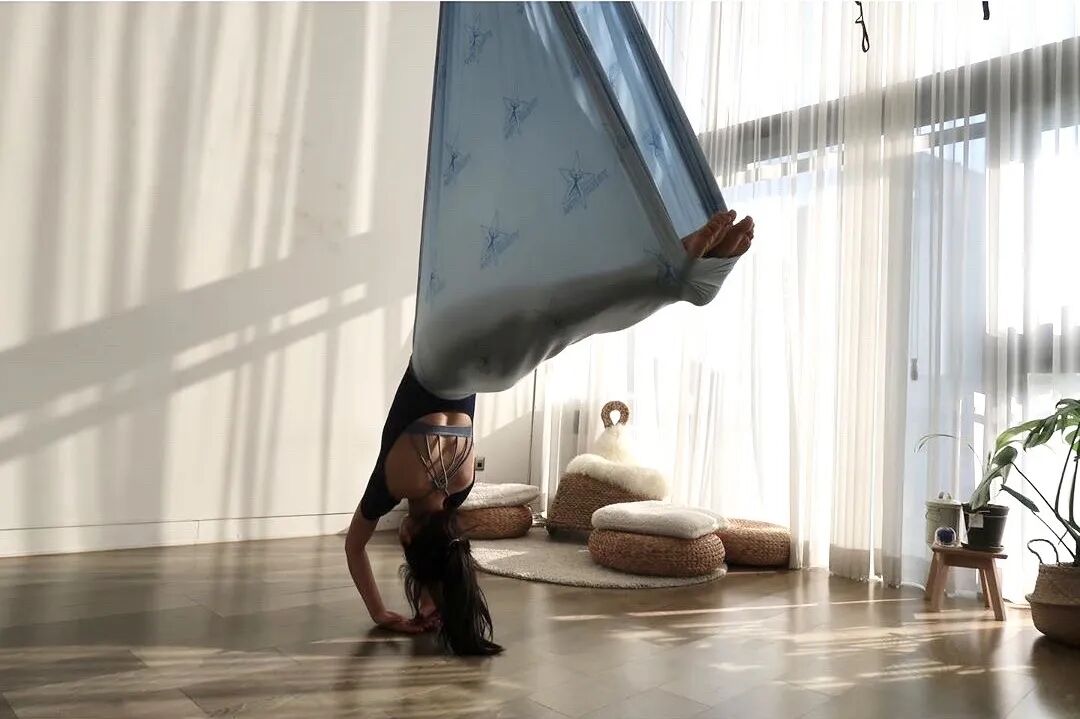 另外,有高血压和心脏问题以及眼压过高等人群都不适合做空中瑜伽哦,包括孕妈在内,大家一定要在健康允许的范围内量力而行!