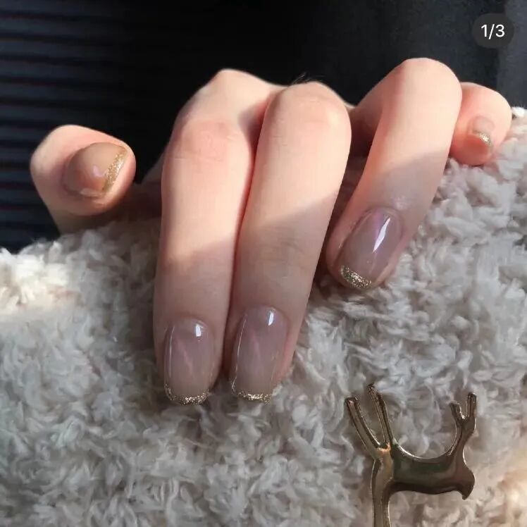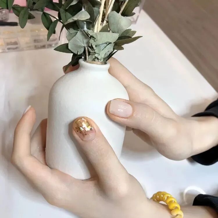 也有不少女生选择跳色,在裸色中加入金属色调。甲色一如既往的干净,但却更显精致。
