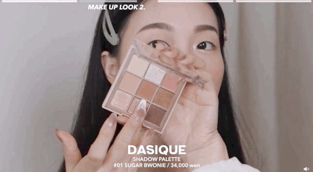 这款眼妆整体偏裸色系带有一点珠光感,涂上粉色调的口红可以去约会,换个正红色又非常适合通勤,百搭又好上手赶紧学起来吧~