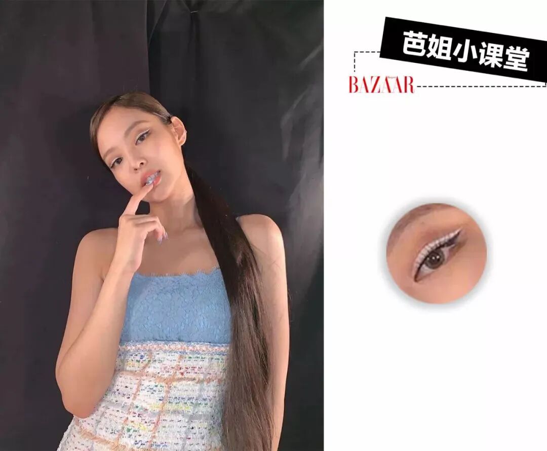 丹凤眼小藏双的Jennie,之前也用同样的方式打造过近两年来都比较流行的彩色眼线妆,个性又简单。