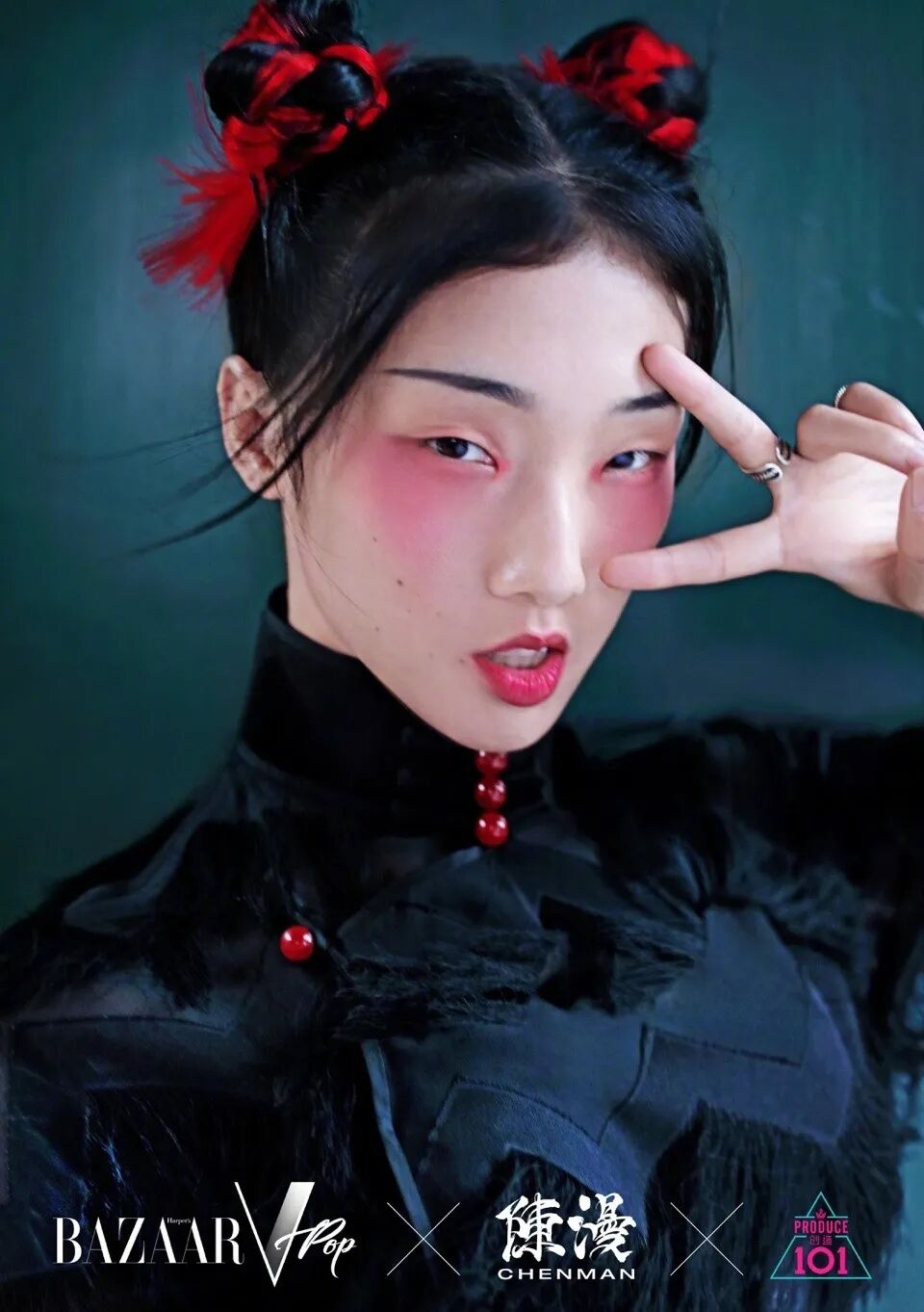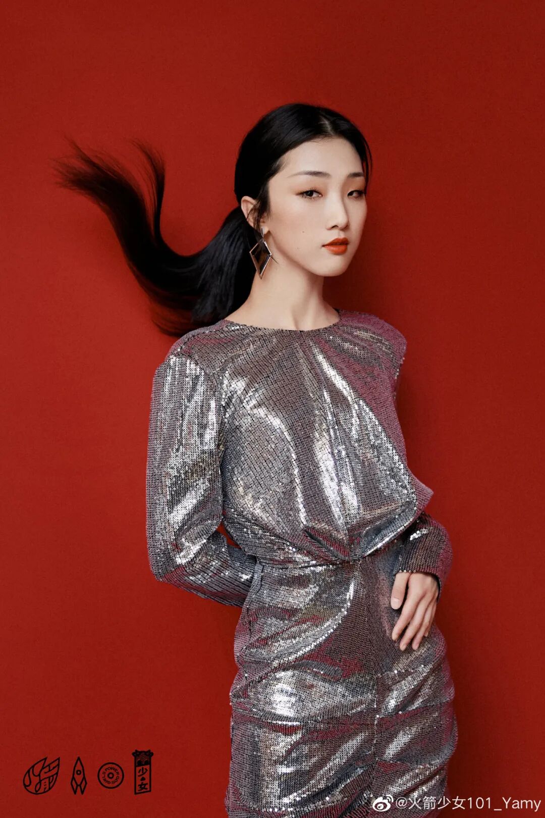 不打折扣的单眼皮、狭长的丹凤眼也没有所谓的黄金比例,看上去有点酷有点凶的Yamy,可能的确不是大众意义上女团脸。