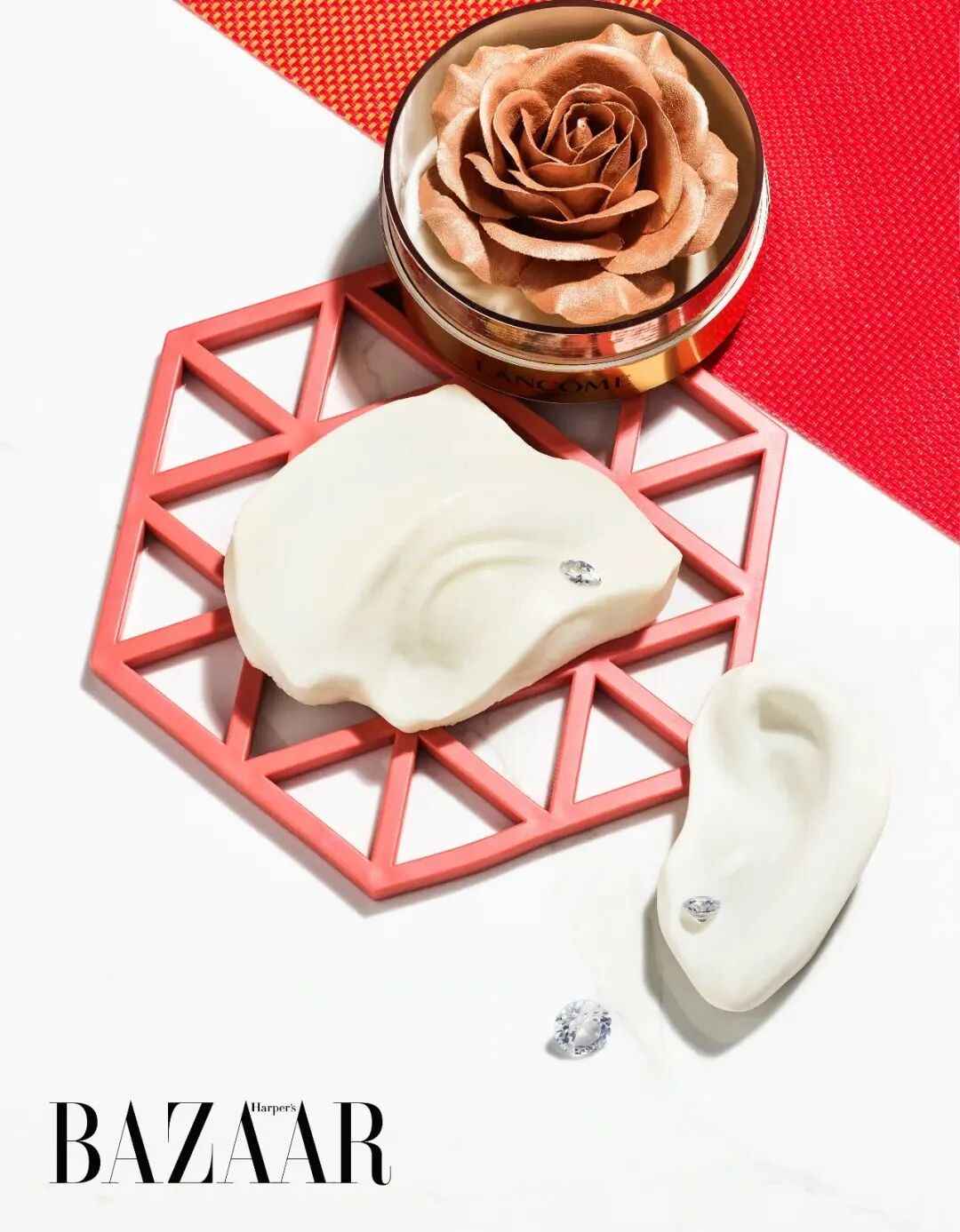 当脸颊闪闪发光,整个人的面部立体感都会上升,如果再在耳阔清扫一点亮色,侧颜也会格外迷人。这份亮闪闪的“石膏感”,也是有着丰富内容的小甜美。
