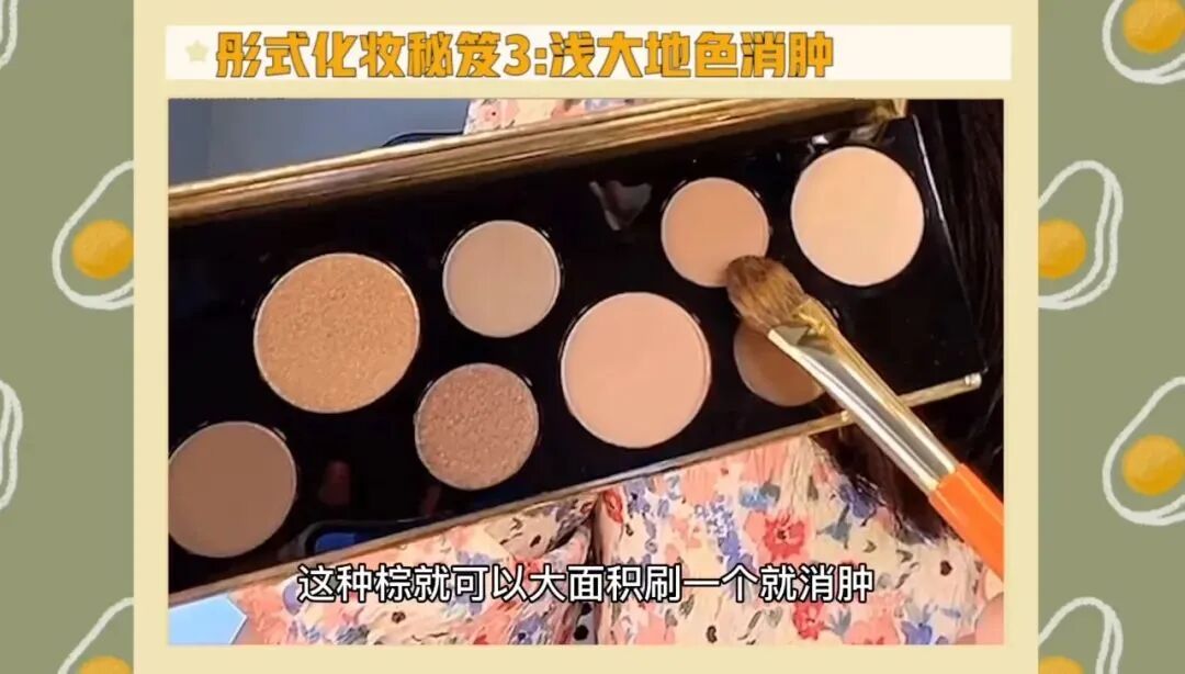 眼影用大地色就好,用浅米色在上下眼睑大范围打底,可以消除早上睡醒泡泡眼的现象。