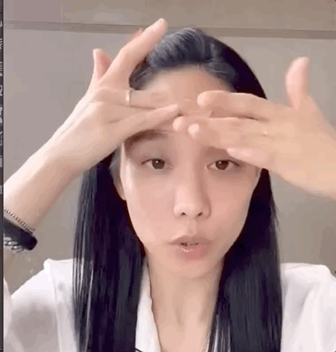 抹上面霜后,用手指肚在额头打圈按摩,既可以加快面霜的吸收,也可以放松肌肤,平缓额头上的皱纹。