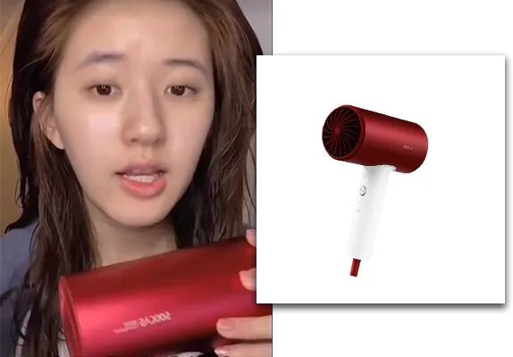 赵露思吹头发也是有技巧的哟,她会选择素士电吹风,机身只有13.7cm,非常小巧方便,头发厚的姐妹不用担心吹久了手臂很累。
