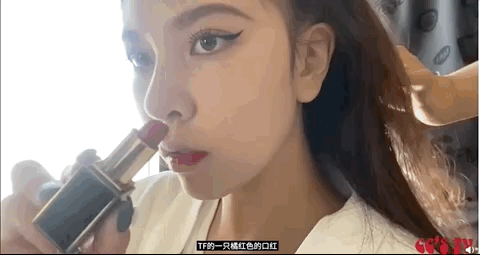 最后是唇妆的部分,宋妍霏选择了一款Tom Ford黑管唇膏,橘色系的。没有红色系那么强的气场,更为柔和。