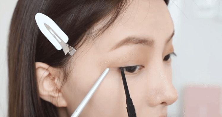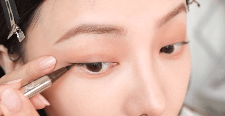 宽度更窄的姐妹就干脆用眼线胶笔填充睫毛根部画出内眼线,然后在眼尾处自然延长就可以啦~