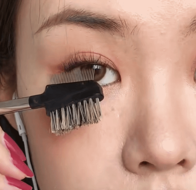 STEP 5:最后用睫毛小钢梳梳理一下,就拥有根根分明的睫毛效果啦~