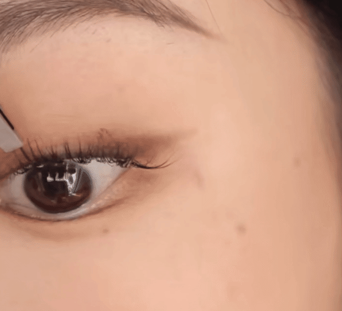 STEP 3:然后在真假睫毛之间贴上11毫米的A型仙女毛,根据自己睫毛本身长度贴满;