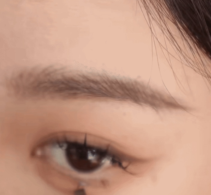 不用追求层次感,睁开眼睛也不太容易能全部看到,再用棕色或黑色眼线笔沿着外眼角平滑上挑。