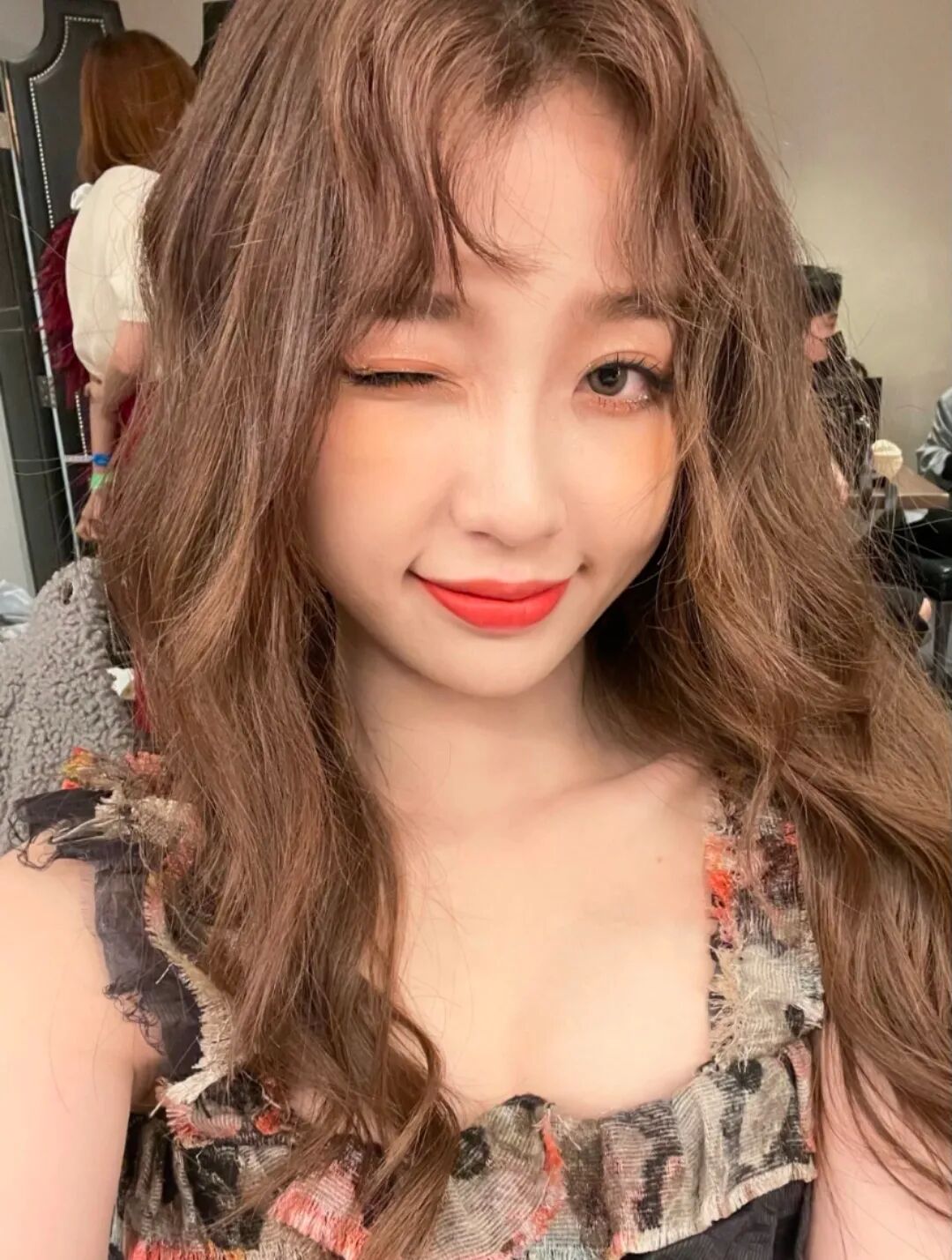 平时多见沁沁比较清新氧气的造型,这次化了稍浓的眼妆才发现,原来是个窄双的美少女。