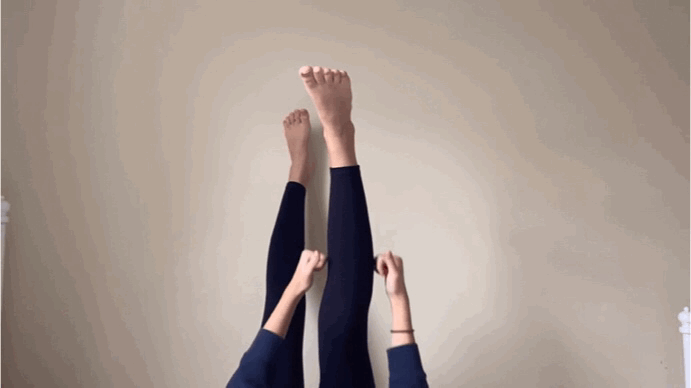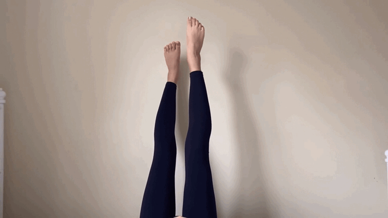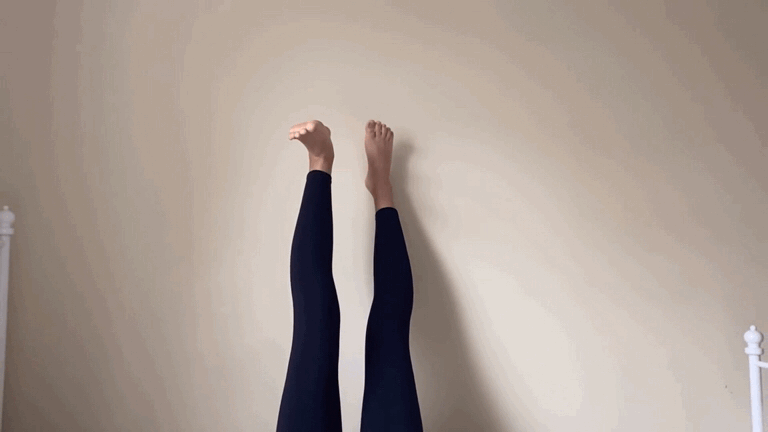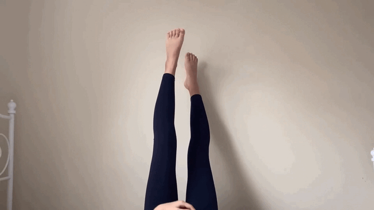 STEP 1:躺在床上把腿抬起来,脚后跟靠在墙面上;