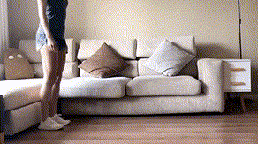 STEP 4:然后双手握拳,用指关节从上向下按摩小腿两侧,够不到的同学可以弯曲下膝盖,重复做15次;
