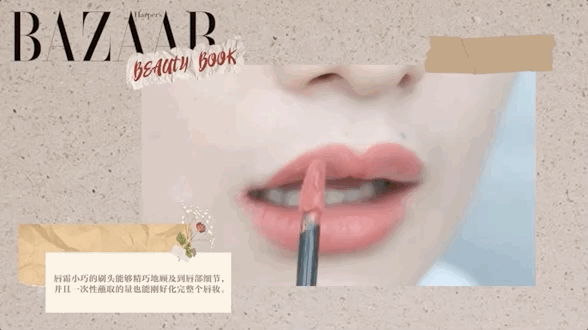 唇霜小巧的刷头能够精巧地顾及到唇部细节,并且一次性蘸取的量也能刚好化完整个唇妆。