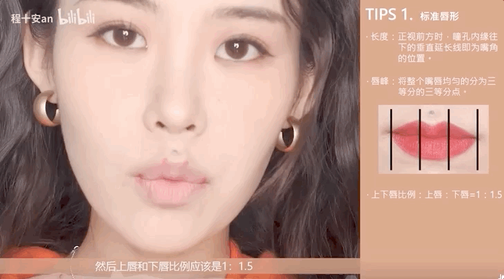 而最后就是上下唇厚度的比例,标准比例是1(上唇):1.5(下唇)。