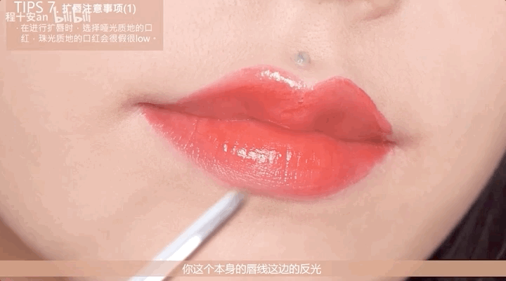 尤其不要用唇蜜或者滋润类的质地,blingbling的亮光会让唇线部分反光,显得很假。