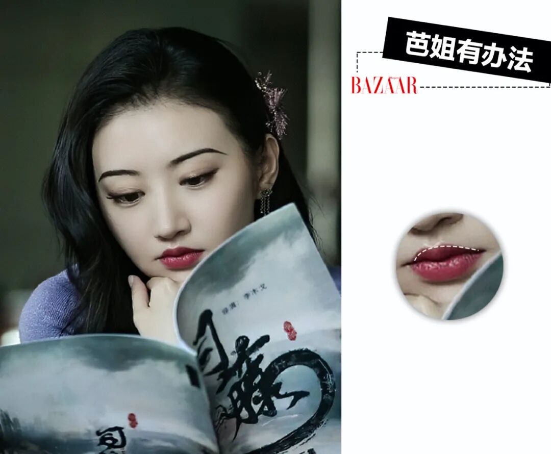 景甜在剧中的唇妆不光是会勾勒出干净利落的饱满唇形,唇色的选择也大多以较为饱和的红色系为主。