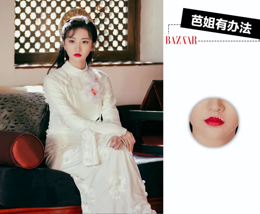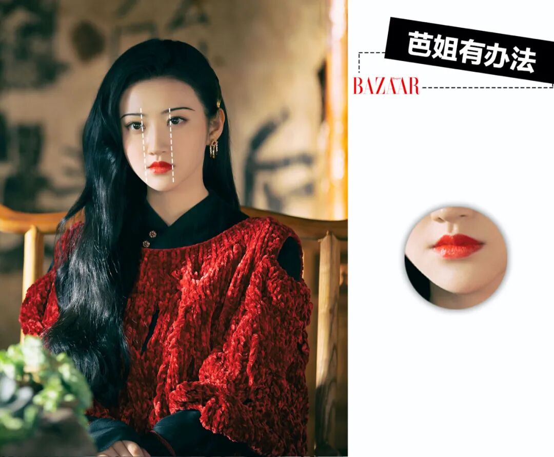 平日里的造型,很多时候大甜甜都在规避这个先天条件,但这次的唇妆反而利用这个特色打造出了更具复古美的国风饱满唇。