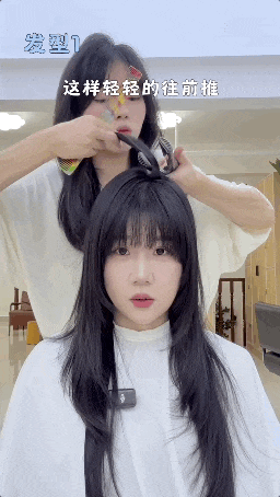 之所以人气不减,在于这款发型层次分明却不显发量稀薄,不用怎么费力打理就有好看的氛围美,让人看了确实很种草~随着秋冬正式到来,大家开始裹上厚外套,头发披下来容易显得人更厚,同时静电也悄然而至,长发只会遭受成倍的“噼里啪啦”,想想就痛......高层次发型正好满足了改变长度和层次两方面的需求,若你也心动了,就一起来看看如何剪出适合自己的高层次吧~显发量多是层次发型最明显的一个特点,角度倾斜的剪法能让层次丰富起来,堆砌出蓬松的视觉体积,看起来头型饱满,发量激增。而发尾适当减轻后,更添轻盈感和空气感,避免了头重脚轻带来的比例不佳问题,推荐细软榻发质的姐妹尝试,轻轻松松头包脸。除此之外,窄面形和阔面形也比较适合层次剪发,上实下虚的高层次中长发会横向扩充脸形,而三层次中长发带来的慵懒八字刘海,能够很好地修饰阔面脸哦~不过,容易炸毛的发量富婆们需要慎重!毛糙分叉问题可能会被放大,而且沙发容易变成蘑菇头。当下流行的高层次发型基本都是三层的,层次渐变衔接,不会有明显的分层,手法上也要注意,不是单纯的剪碎打薄,把握好这两点可以大大降低翻车概率哦。第一个层次到下颌线位置,若你没有刘海,这一层相当于剪了个可直可卷的长八字刘海,扎起来也很好看,既能修饰颧骨额头,又能修饰脸侧。若本身就有齐刘海或者想剪个空气刘海的也不影响,让Tony老师将第一层与刘海流畅衔接一下,以向内的圆弧形顺下来,怎么动都有空气感~