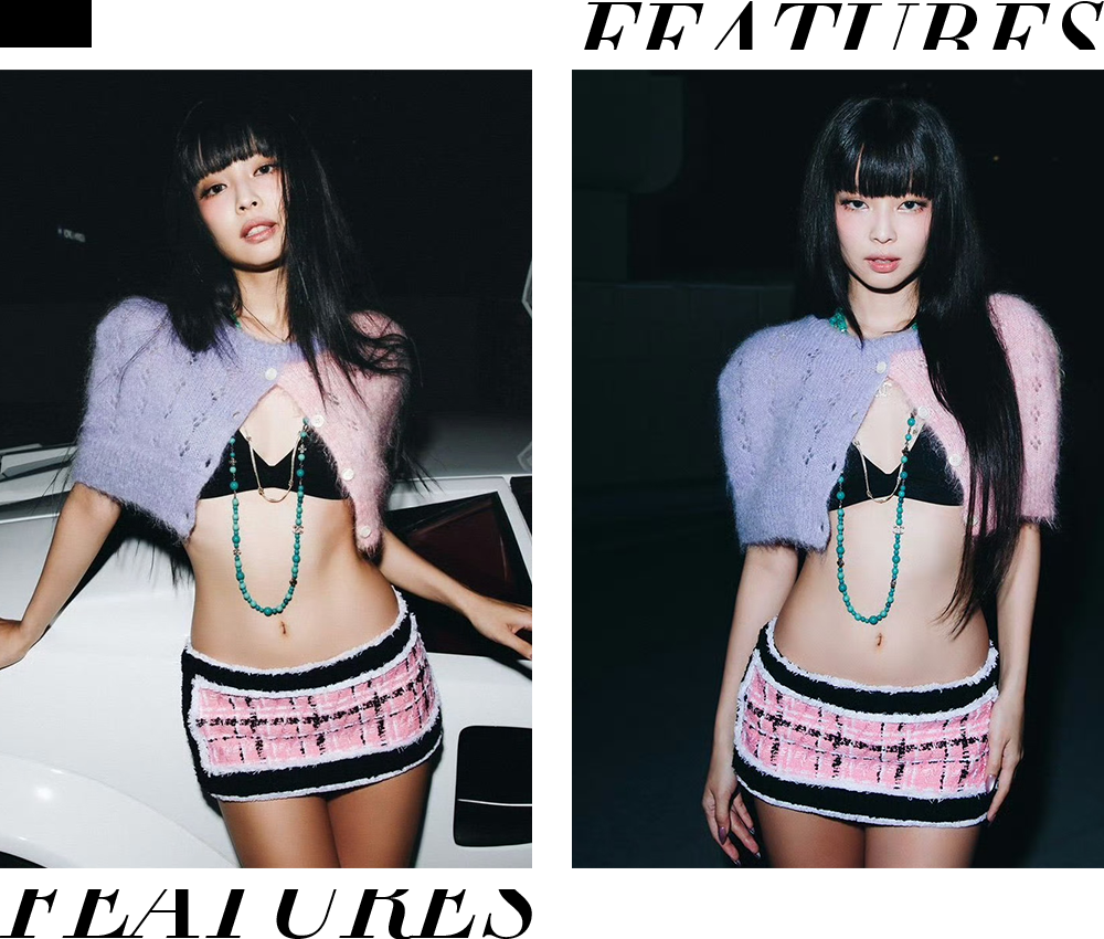 在MV中,Jennie一连换了五套造型,大胆展示好身材,上一秒还是甜美浪漫的Blokett风,下一秒就变成了美式复古的画报模特,完美消化多种风格。
