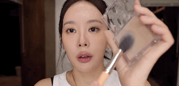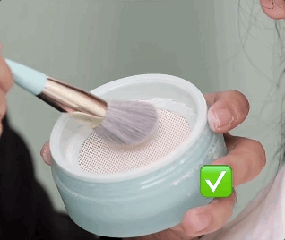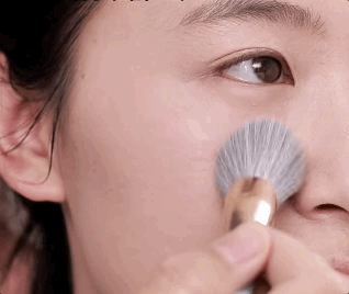 若选择散粉定妆,等底妆先干一干,然后用一个大的散粉刷轻轻地取两下粉,在盖上进行揉搓,让散粉充分释放到刷子里,再轻戳面部,这样就拥有了一个微哑光的雾面妆感~