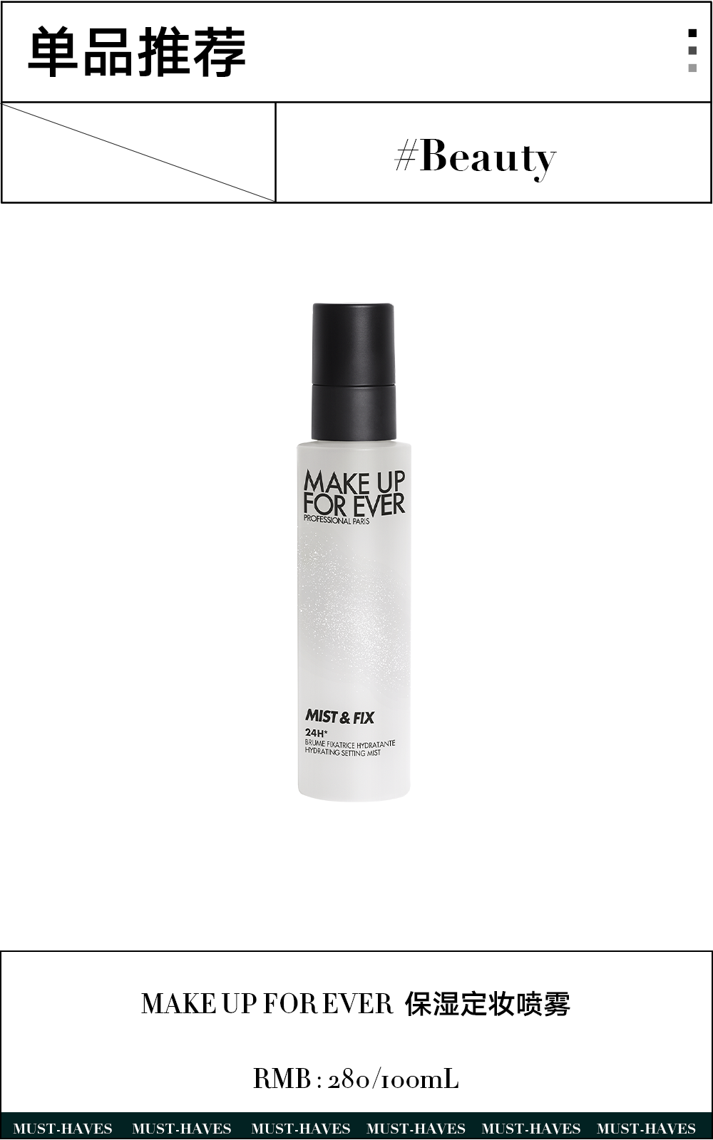 MAKE UP FOR EVER 保湿定妆喷雾升级了喷头,水雾细中有力,能均匀覆盖面部,成膜速度快,锁妆力也有提升,能够全天保持湿润不紧绷,拒绝暗沉脸,佛手柑和铃兰的香气充满了使用的愉悦感~