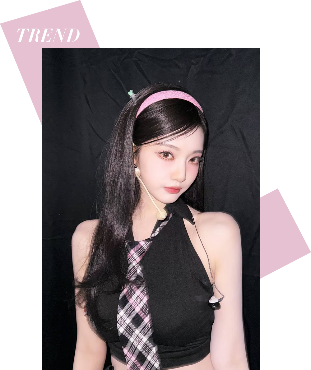 我们还可以利用发饰作搭配,海绵发箍不得不说是加高颅顶的利器,既能修饰脸形还可以实现隐形显高的效果。