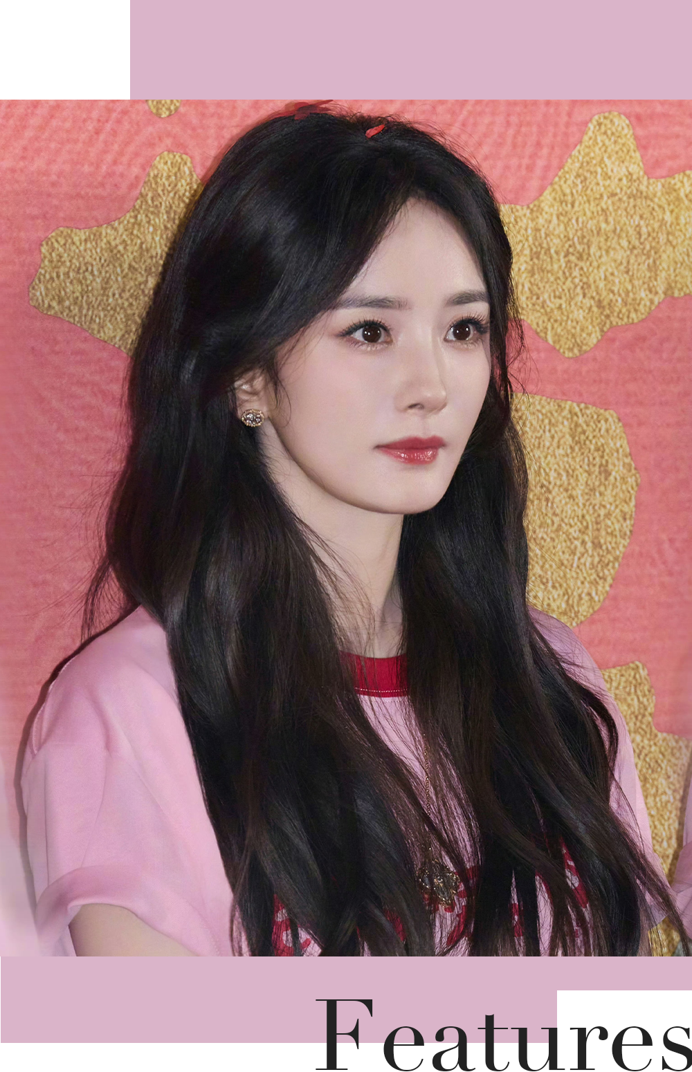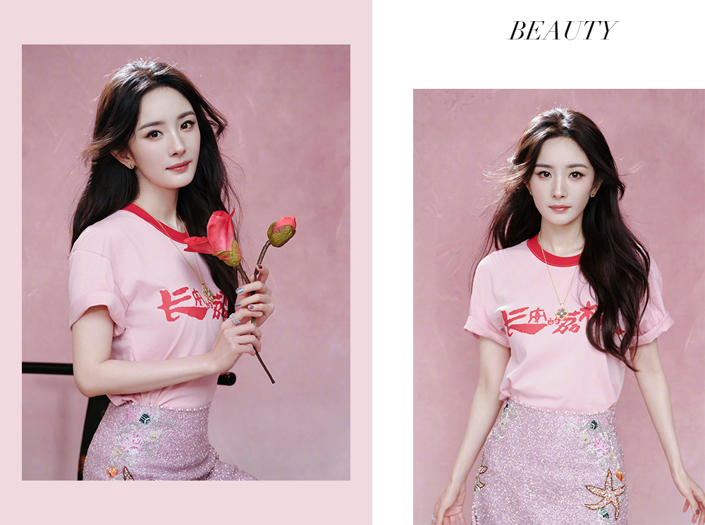 不愧是大幂幂,简单的T恤搭配纱裙就能化身顶级甜妹,一头秀发又密又蓬松,简简单单别一下耳侧的头发,温婉的公主头效果就出来了~