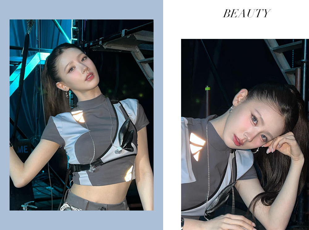 换成半扎马尾,乱中有序的造型感变得更有视觉冲击力,摇身一变为发量小富婆,平添了几分俏皮,是女团爱豆们的新宠儿。