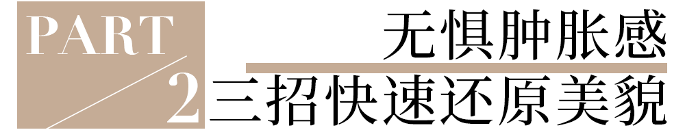 最后还有PMS(premenstrual syndrome,经前综合征)引起的水肿脸,通常出现在经期前一周或半个月内,受内分泌影响,体内的雌激素水平突然上升,水钠储留。体重在这期间也会有2~3斤的波动,都属于正常的生理现象,等到生理期结束,水肿自然也就逐渐消退啦~吃喝上多加注意,迅速消肿的Tips也得备上,对于易肿姐妹来说,晨起后的浮肿会让整张脸比平时大上两圈。考虑到一些姐妹可能咖啡因不耐受,喝不了冰美式,所以给大家安排了按摩和运动消肿法,更适用于深层和长期消除肿胀感~先做好面部护肤,找到眉骨下的凹陷处,用大拇指指尖从中间向两边点按,来回按三遍;再按眼下凹陷的部分,同样点按三遍。摸到颧骨下面的凹陷处,双手握拳后用大拇指的指腹按住往上抬,同时头要往下用力。再用其余四指用力按颧骨的下沿,持续向面中挪动按压,直至能碰到鼻翼,而后反方向再做一组。弯曲手指,食指贴住下颌骨外侧,中指贴住内侧,两指向上刮动提拉10次;握拳后弯起中指,打圈按摩放松唇周肌肉。用大拇指顺着颧骨一路提拉到耳后,做3组;再找到胸锁乳突肌,从上往下边揉边捏。最后时间充足的话,可以用含有绿茶和积雪草成分的面膜舒缓一下发热的面部,提升后续妆容的服帖度。还有一步速成法也一并奉上,是很多明星爱豆们常用的消肿方法:找一个较粗的皮筋,绑住耳朵,初次尝试觉得痛就可以取下来了,而后慢慢延长时间~别忘了取下皮筋后放松下耳朵,用手捏和捏和耳朵,充分打圈按摩。对于早起时间比较紧张的上班族以及早八党们来说,来不及按摩也没关系,来做2组开合跳,每组10~15次,让水肿速速退散!肿不可怕,别让水肿影响了精神头和健康才是最关键的,调整好状态,人才会更漂亮哦~