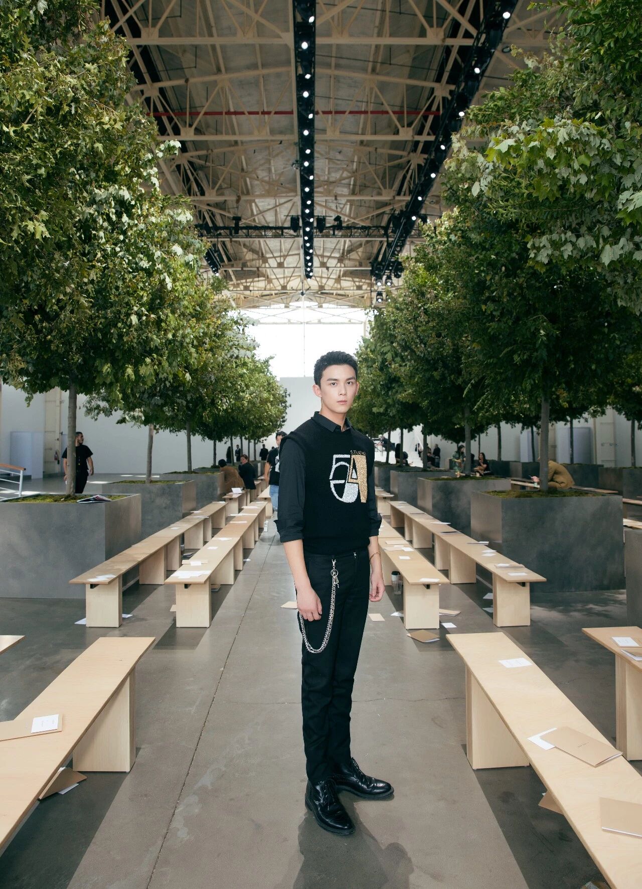 品牌大中华区代言人吴磊身着MICHAEL KORS COLLECTION 男士2019秋季Studio54胶囊系列黑色针织无袖上衣、黑色休闲长裤现身MICHAEL KORS COLLECTION 2020春季时装秀,三石弟弟在充分展现出自己少年感的同时,更添了一抹玩味不羁的气质。