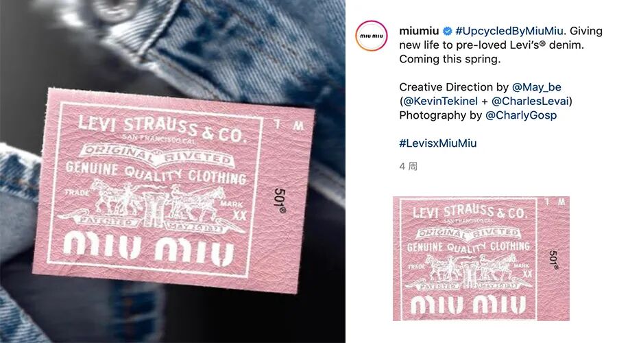 Miu Miu x Levi’s® 联名预告发布,两个风格迥异的品牌究竟能碰撞出怎样的火花?据悉双方将在 2021 年春季带来全新升级重塑系列,从目前的预览照中我们可以提前一览端倪,抢眼的粉色皮标会是本次联名系列的招牌logo,引人好生期待。