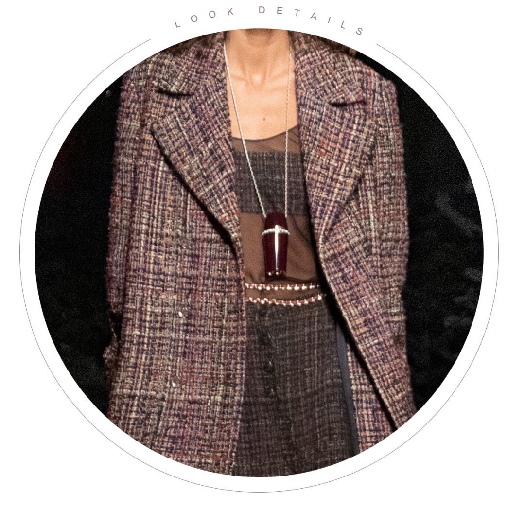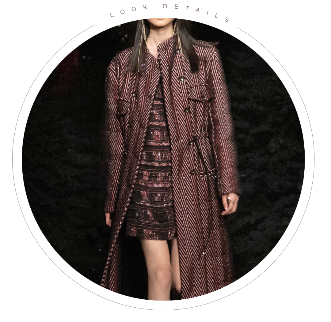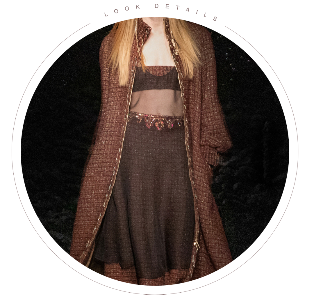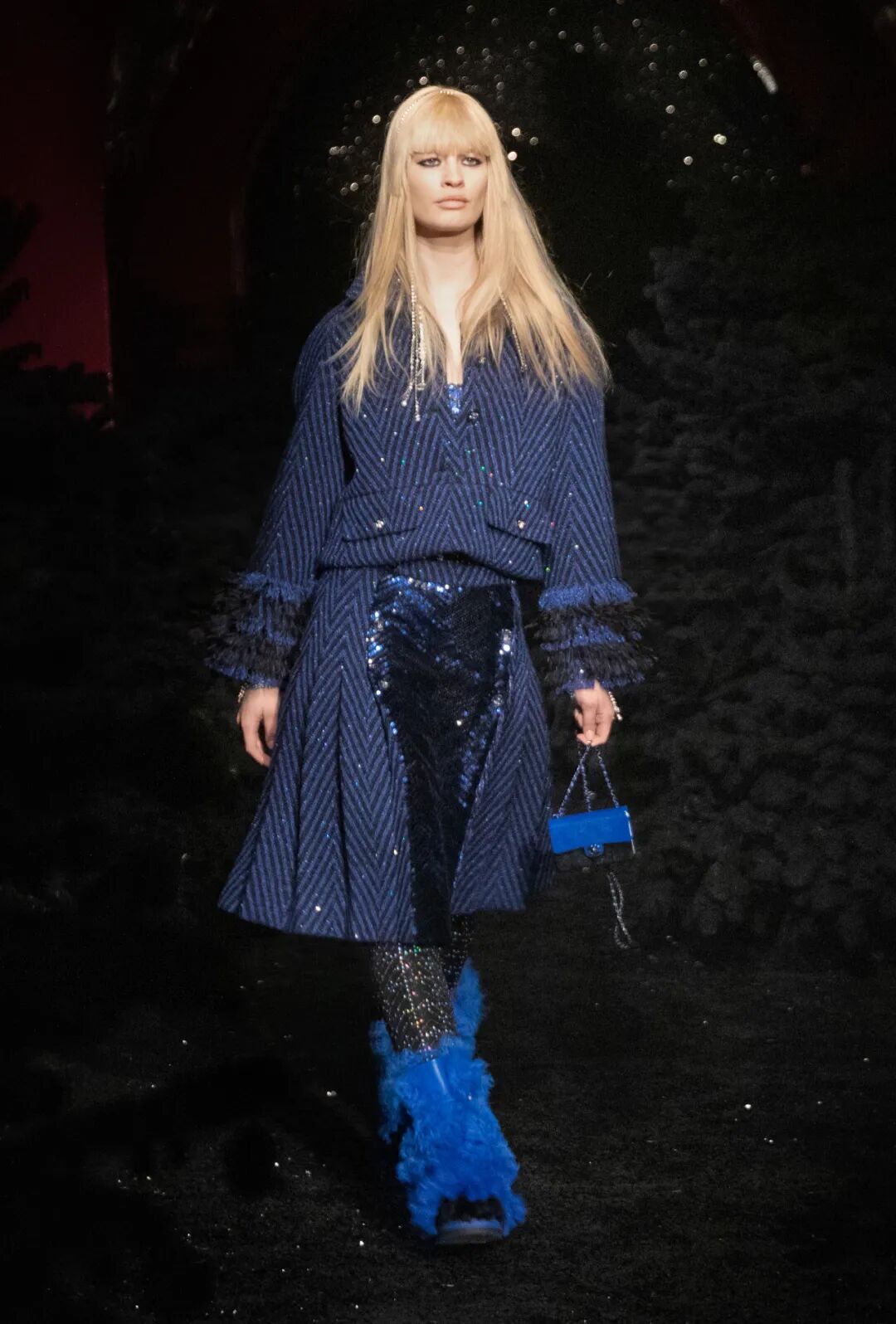这个系列融合了两种灵感,Virginie Viard所钟爱的滑雪假日的那种氛围,和从20世纪70年代延续至今的,一种非常酷的巴黎式的时髦。她旨在营造“温暖”“生动”的秀台氛围。Virginie Viard将“对比”概念融合其中,在本系列中呈现出一场关于量感、材质与作品之间的碰撞和较量。